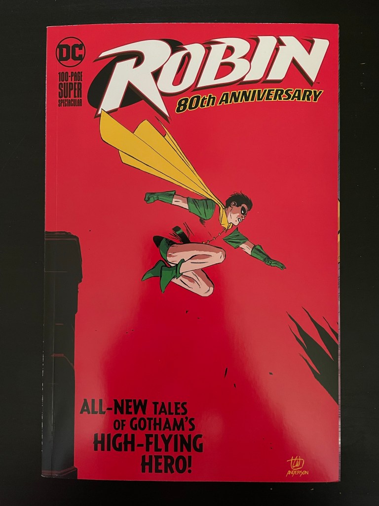 This is a 100-page special that was released for the 80th Anniversary of the appearance of Robin. It contains stories for Dick Grayson, Jason Todd, Tim Drake, Damian Wayne and Stephanie Brown.