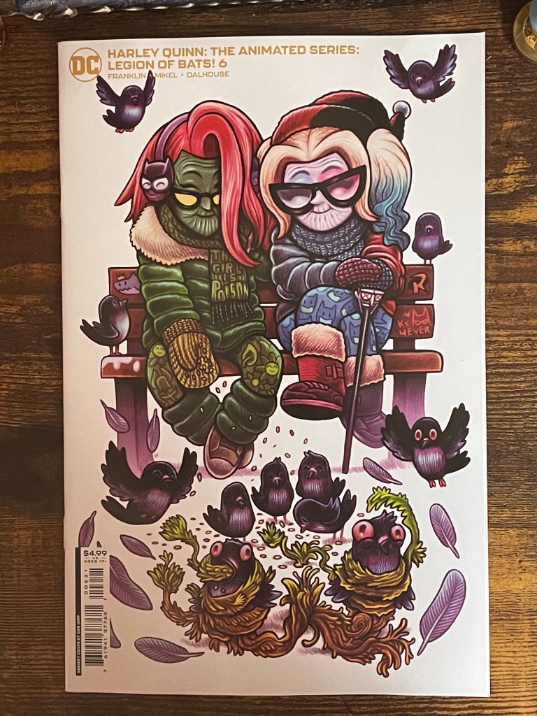 This is the final issue of this mini-series! I absolutely adore this cover, especially the pigeons. I hope Harley is able to convince Ivy to let them go.