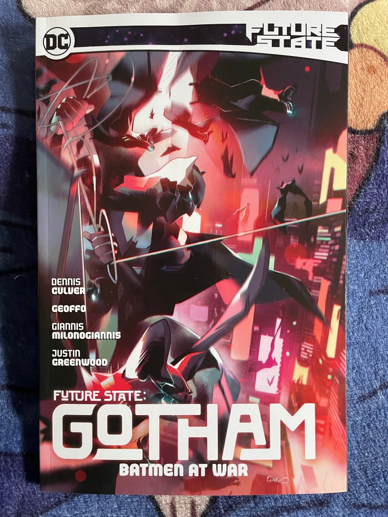 This is the last graphic novel in the Future State: Gotham series. I’m excited to read the conclusion, as I’ve been enjoying this series. It’s been an interesting story for Jason Todd especially.